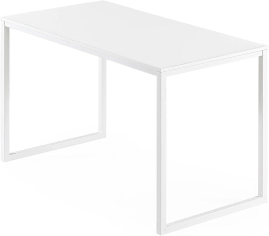 55 Inch White Frame Desk, Computer Workstation, Office Desk, Dining Table, Easy Assembly, Natural