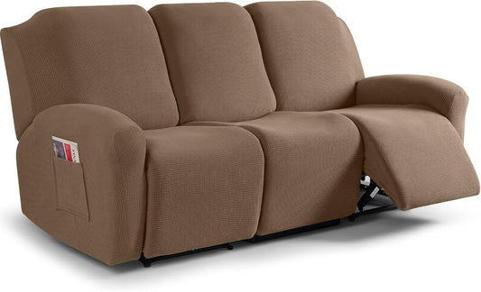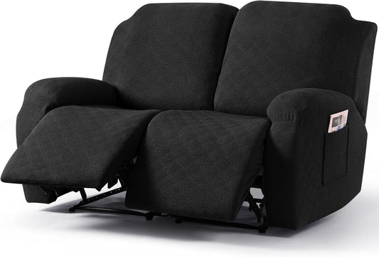 Recliner Sofa Covers 8-Pieces Stretch Large Couch Covers for 3 Seats Reclining Slipcovers Soft Jacquard Pattern Furniture Protector Black