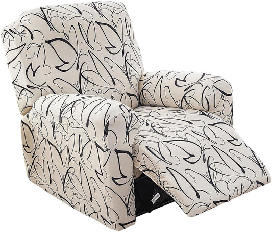 Stretch Recliner Slipcovers Printed Recliner Chair Covers 4-Piece Lazy Boy Chair Covers Non Slip Reclining Furniture Protector Sofa Couch Cover with Storage Pocket for Living Room