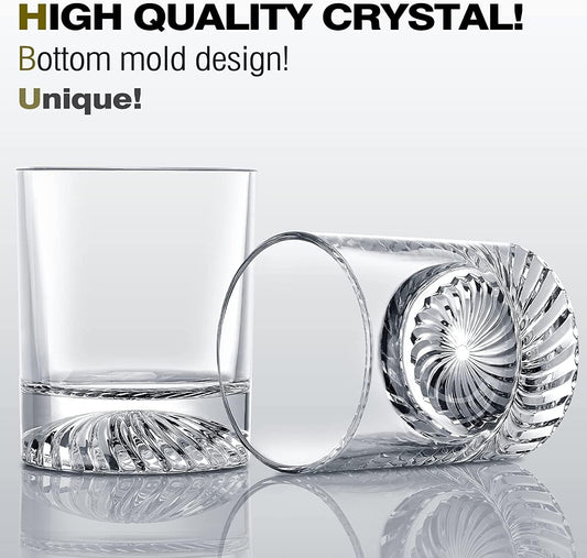 Old Fashioned Whiskey Glasses 11 Oz - Glasses Set of 4 for Bourbon Cocktail Scotch Snifter Malt Cognac - Heavy Crystal Bar Glassware - Unique Men Gift