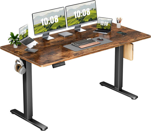 Electric Adjustable Height Standing Desk - 40 x 24 inch Sit to Stand Up Desk with Splice Board, Rising Home Office Computer Table with 2 Hook and Wire Hole for Work