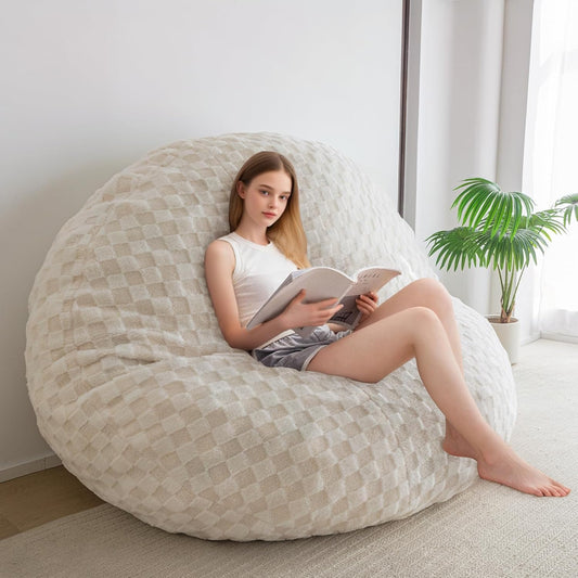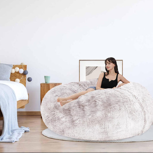 Bean Bag Chair for Adults Kids Without Filling Comfy Fluffy Giant Round Beanbag Lazy Sofa Cover for Reading Chair Floor Chair, 6FT, Grey