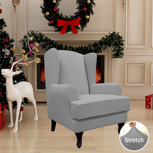 Stretch Wingback Chair Sofa Slipcover 2-Piece Sofa Cover Furniture Protector Couch Soft with Elastic Bottom, Spandex Jacquard Fabric Small Checks, Light Gray