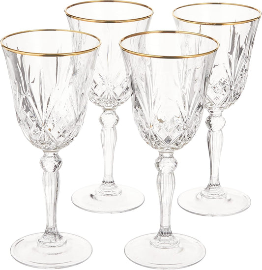 Crystal White Wine Glass with Gold Band Design, Set of 4,6 fl oz