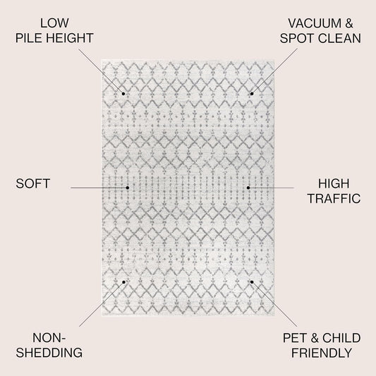 MOH101B-8 Moroccan Hype Boho Vintage Diamond 8 ft. x 10 ft. Area-Rug, Bohemian, Southwestern, Casual, Transitional, Pet Friendly, Non Shedding, Stain Resistant, Easy-Cleaning, Cream/Gray