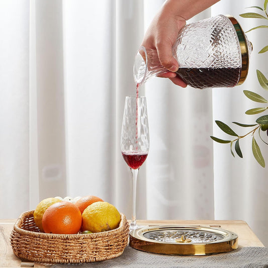 Red Wine Decanter, Spinning Wine Aerator, Thickened Crystal Glass Golden Base, 360 Rotation, Rapid Wine Aeration, 50oz/1500ml, Wine Lover