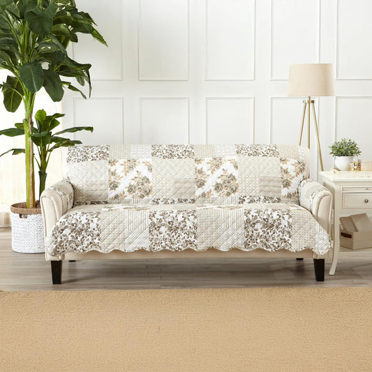 Patchwork Scalloped Printed Furniture Protector Stain Resistant Sofa Cover (Sofa, Taupe)