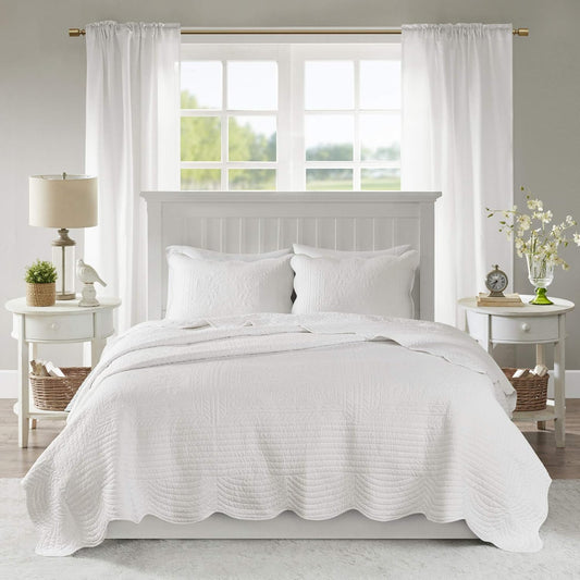 Quilt Set-Casual Damask Medallion Stitching Design Lightweight Coverlet Bedspread Bedding, Shams, Full/Queen (90 in x 90 in), Medallion White 3 Piece