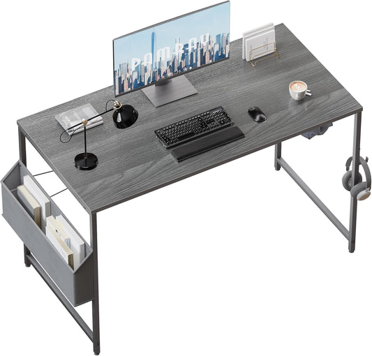 47 Inch Computer Desk for Small Spaces with Storage Bag, Home Office Work Desk with Headphone Hook, Small Office Desk Study Writing Table