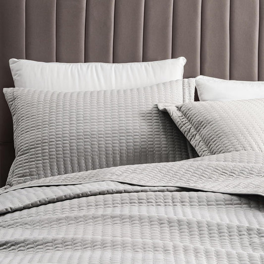 King Quilt Bedding Set, 3-Piece Lightweight Summer Channel Stitch Quilt Set with Shams, Ultra Soft Light Grey Bedspreads, Quilted Bedding Coverlets for All Seasons