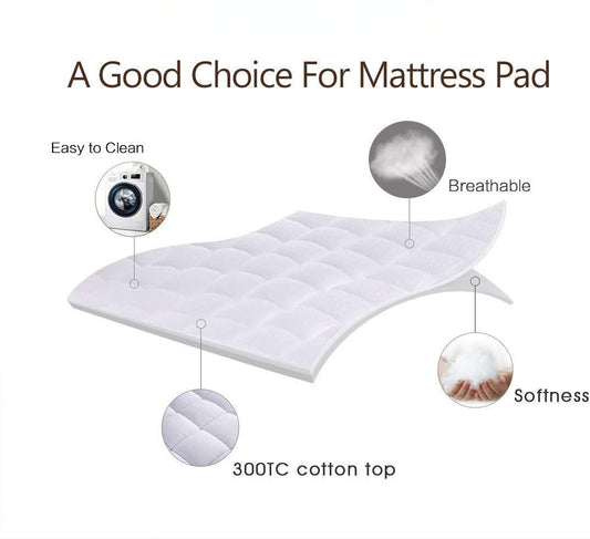 Queen Size Mattress Pad Pillow Top Mattress Cover Quilted Fitted Mattress Protector Cotton Top Stretches up 8-21" Deep Pocket Cooling Mattress Topper (60x80 inch, White)